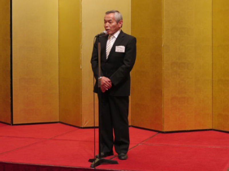 福島民報社賞を受賞した林精器製造は、高橋社長から表彰状と盾を受け取りました。第二部の交流会では、受賞者を代表して林社長がスピーチを行い、震災後の事業再建の苦労が認められた喜びや、今後もものづくりを通して地域発展を行いたいという意気込みを語りました。
